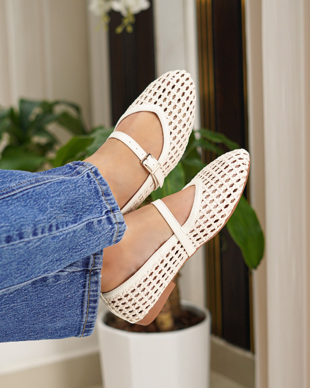 Su estructura permite mayor ventilación mientras mantiene un estilo sofisticado y femenino. El diseño con punta estilizada y correa superior brinda un ajuste seguro y un toque moderno que eleva cualquier look casual.