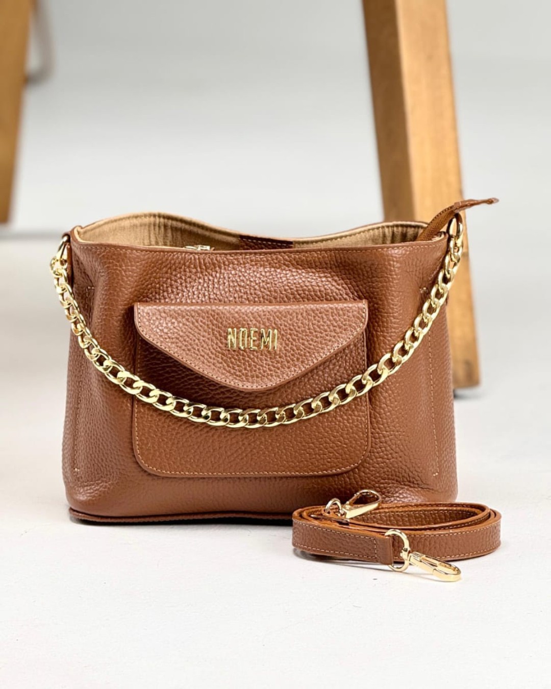 El Manos Libres Nidia Cuero combina diseño moderno y funcionalidad para el día a día. Elaborado en cuero, su silueta compacta y elegante se complementa con una cadena decorativa frontal que aporta un toque sofisticado.