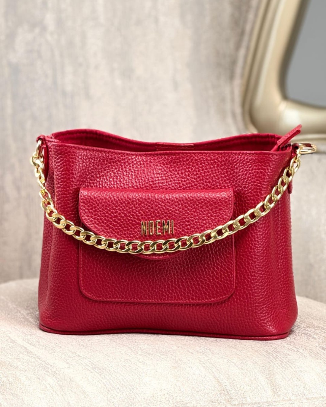 Su tamaño práctico permite llevar lo esencial como celular, llaves, documentos y pequeños objetos personales sin perder estilo.